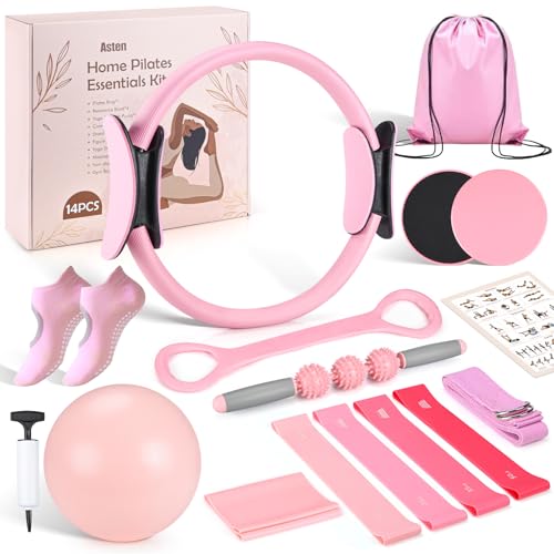 Asten Home Pilates Kit for Women: Pilates Equipment Pilates Ring and Ball Set with Resistance Bands, Core Slider, Foam Roller, Pilates Essentials Kit for Beginner Home Workout, Compact Toning Fitness