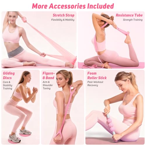 【All Levels Friendly & Gift-Ready】Perfect for beginners, postpartum moms, or advanced users looking for full-body training. Includes a printed workout guide for easy start. With a stylish carry bag and elegant pink design, this pink Pilates set makes a ready-to-give fitness gift for friends, family, or fitness lovers.