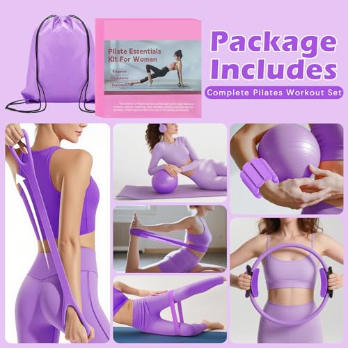 Pilates Kit for Home Workouts – Pilates Equipment Set with Ring, Ball, Resistance Bands, Pilates Accessories, Pilates Essentials Kit for Women, Pilates Sets for Home Exercise