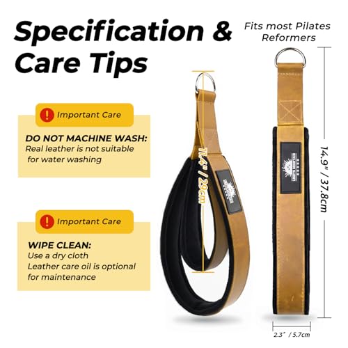 【Ideal for Home & Studio Pilates Training】 Designed for both home workouts and professional studios, this leather double loop strap supports multi-angle Pilates training to improve flexibility, core strength, and mobility. Care Tips: Genuine leather is not machine washable—simply wipe clean with a dry cloth and apply leather care oil occasionally to maintain its premium finish.