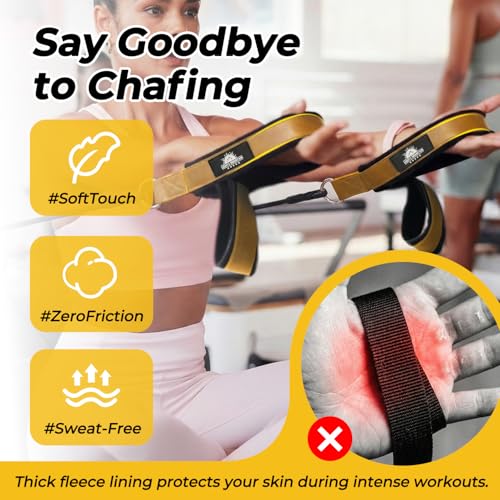 【Ergonomic Design for Comfort & Stability】 The ergonomic strap width and padded fleece lining distribute pressure evenly across your hands and feet, ensuring a secure, non-slip fit during controlled Pilates movements. Focus on your form without discomfort or distractions.